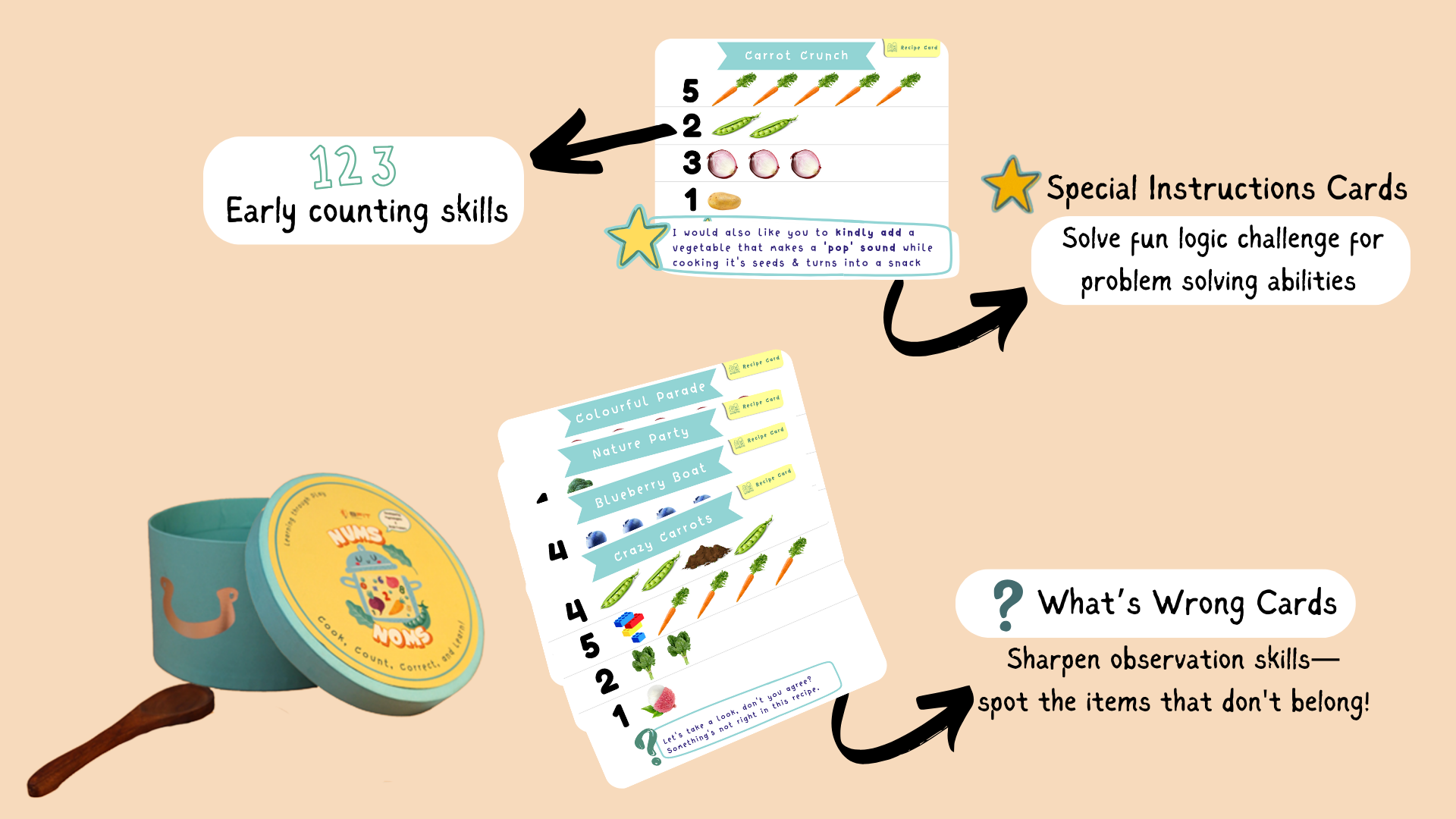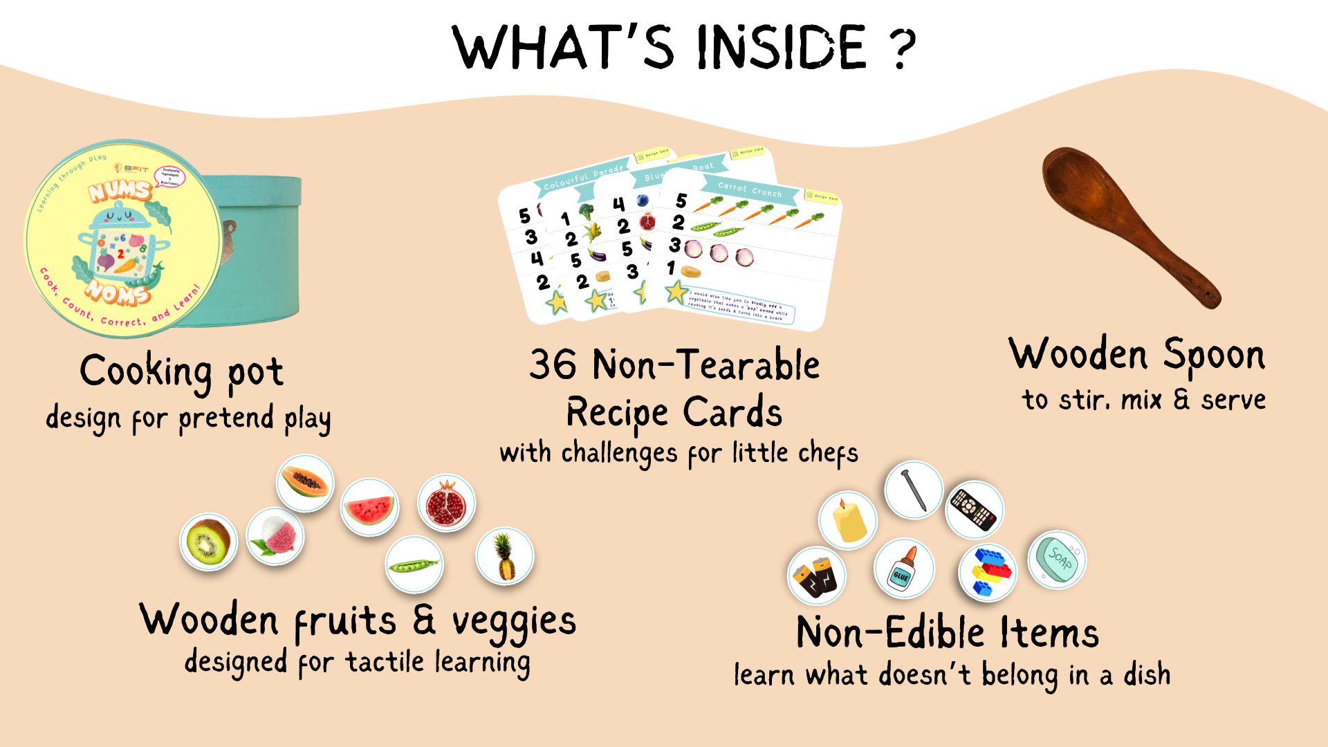 Embark on a magical journey with Nums & Noms, an educational pretend play game that sparks your toddler's imagination! As they step into the shoes of a chef, counting and 'cooking' make-believe recipes with nature-inspired ingredients, children not only have a blast but also build crucial language and organizational skills. Let your little one take the lead in this delightful exploration into the magical realm of imagination, where learning and creativity blend seamlessly. Join the adventure now for a whimsical experience that sparks joy and essential skills development!